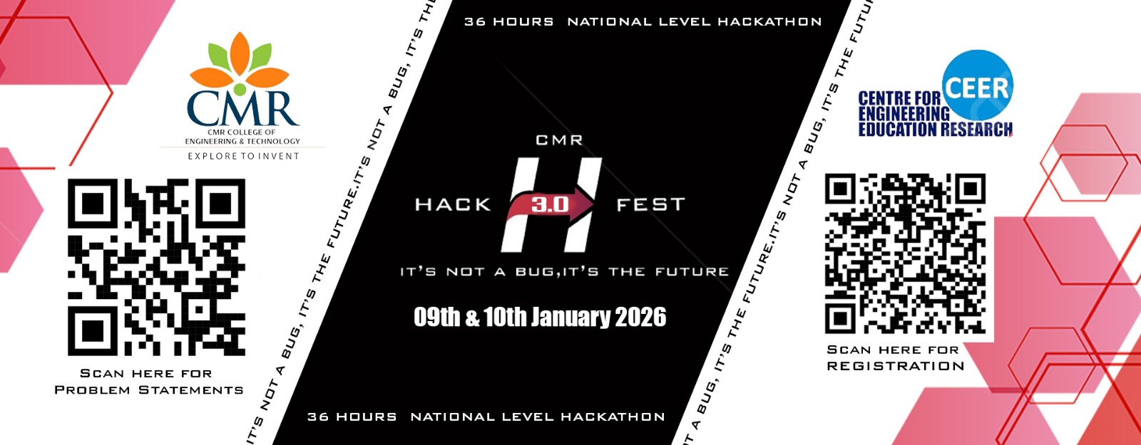 CMR HACKFEST 3.0 is an exhilarating and innovative 36 Hours Hackathon that aims to bring together bright minds and creative thinkers from various institutions to collaborate, ideate and innovate in the realm of technology and beyond. It is an excellent opportunity for students to showcase their skills, network with peers and gain valuable experience in problem-solving.